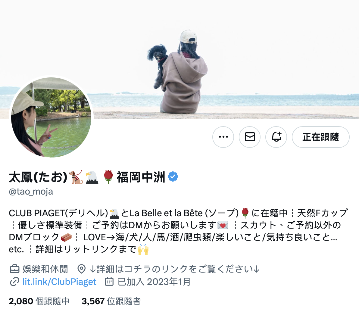 那就是她最近都在自己遠藤沙耶(远藤沙耶)的X上转推名为「太鳳(たお,https://twitter.com/tao_moja)」,看了影片就知道遠藤沙耶(远藤沙耶)这身份只是替身,太凤才是本体,而这位太凤的身份呢,就是个デリヘル(外送茶)以及ソープ(泡泡浴)的风俗妹⋯