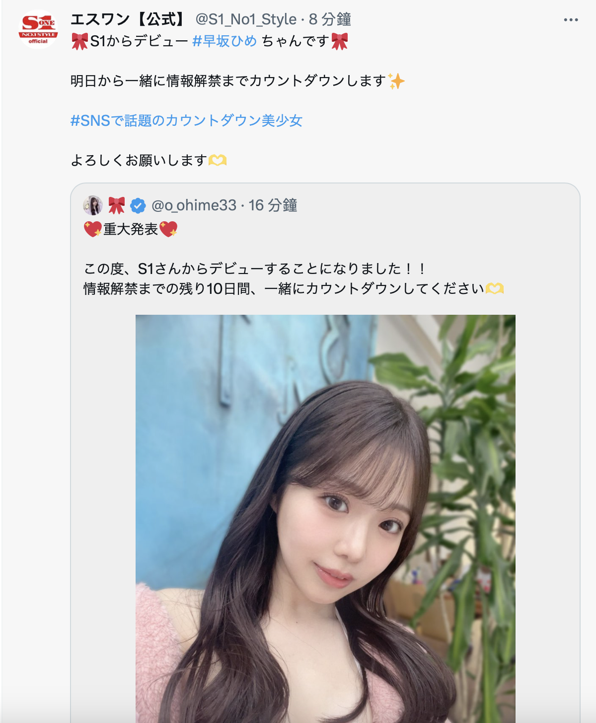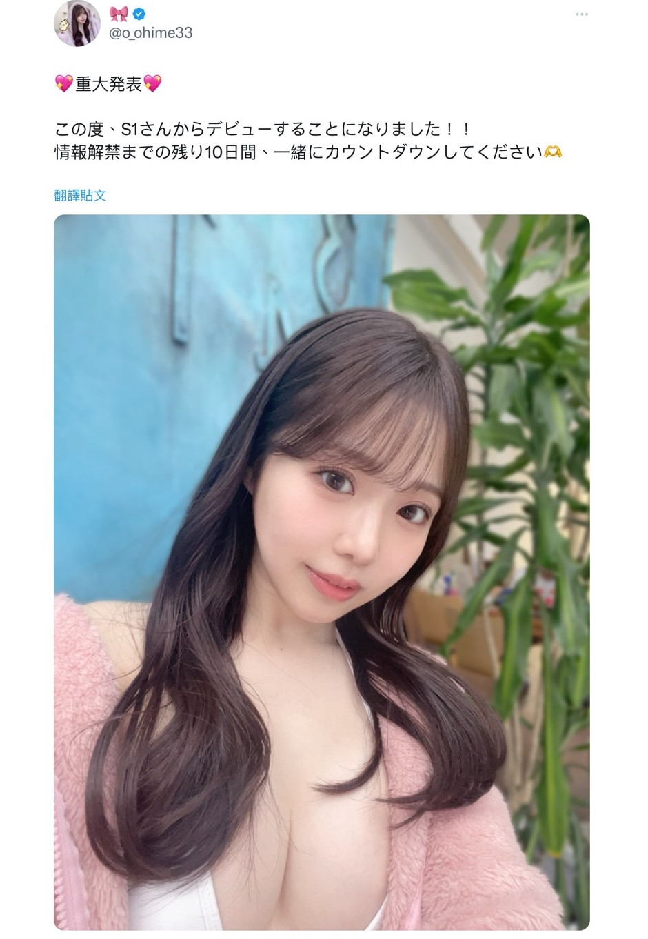 我之前猜测她会是SOD Star的人,结果狠狠地被扇了耳光,今天,她正式宣布会在最顶级片商S1出道,而S1也很快就转推她的发文,连艺名都给了:很文博客-https://www.hinku.com/52874.html