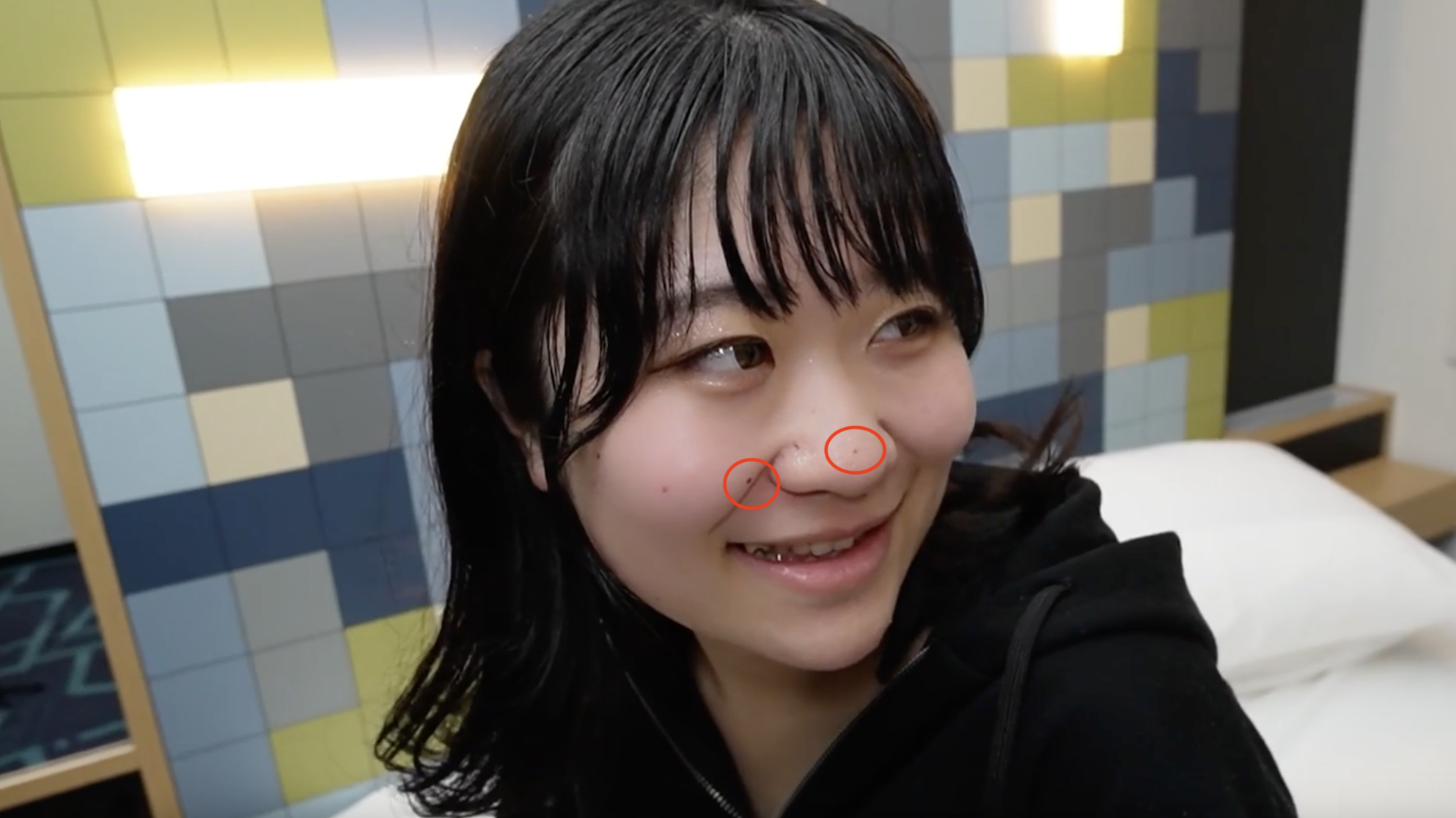 脸上的芝麻有点多,身材也偏肉感,虽然能看到鲍鲍很开心但她的脸蛋就不是那么精致,主要还是靠身材和下马取胜;但也因为脸上的痣很多可说是生有异相所以要辨识她的身份不难,她就是ー