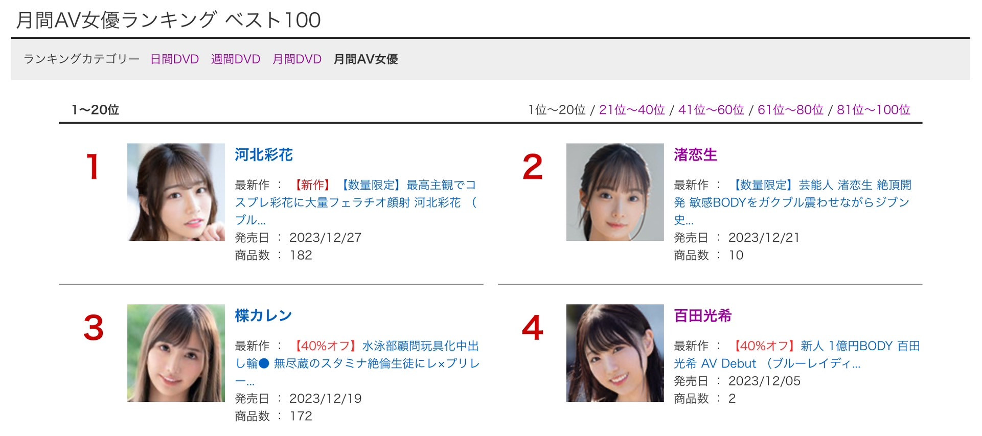 因为单就专属女优的买气来看,楪カレン(楪可怜)就是河北之后最顶尖的高手之一:当然啦,她一个月发两支作品比起其他人是占了些便宜,但回想她刚出道时的状况,在片商OPPAI出道的她个子又小又非常人工,包括事务所在内可能没什么人看好她可以长期担任片商的专属女优吧?但她一出道就很杀,杀到不只OPPAI不肯放她走甚至还多了另一家片商Premium给了专属契约,所以与其说楪カレン(楪可怜)是因为两家片商共同专属所以才这么强不如说是因为她超杀所以才成了两家片商的专属女优,意义完全不同〜很文博客-https://www.hinku.com/53601.html