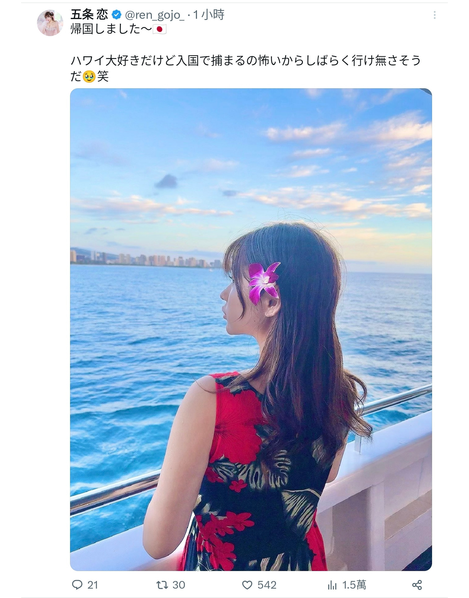 就这样,折腾了三小时五条恋才入境夏威夷,虽然还是玩得挺开心的不过她也说了暂时不会再过去,因为这种在边境被拦下来进了小房间被审问的经验实在太恐怖,,谁都不想要第二次了〜