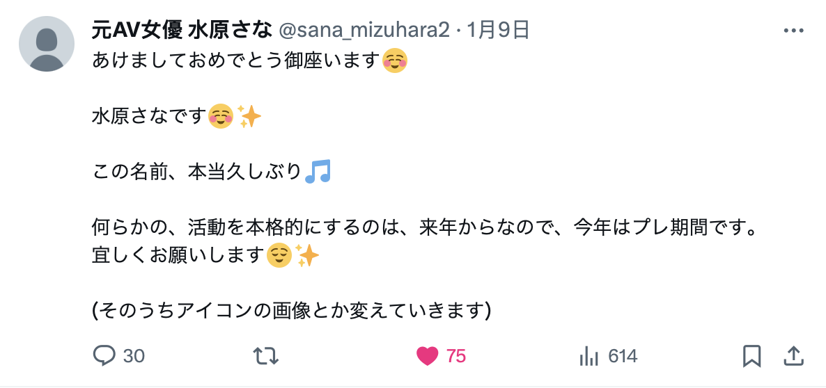 连她自己也都这么说,水原さな(水原纱奈),这个名字真的是好久不见,不过看到这个X的帐号(https://twitter.com/sana_mizuhara2)时,你就知道,她有些事情想做~很文博客-https://www.hinku.com/54268.html