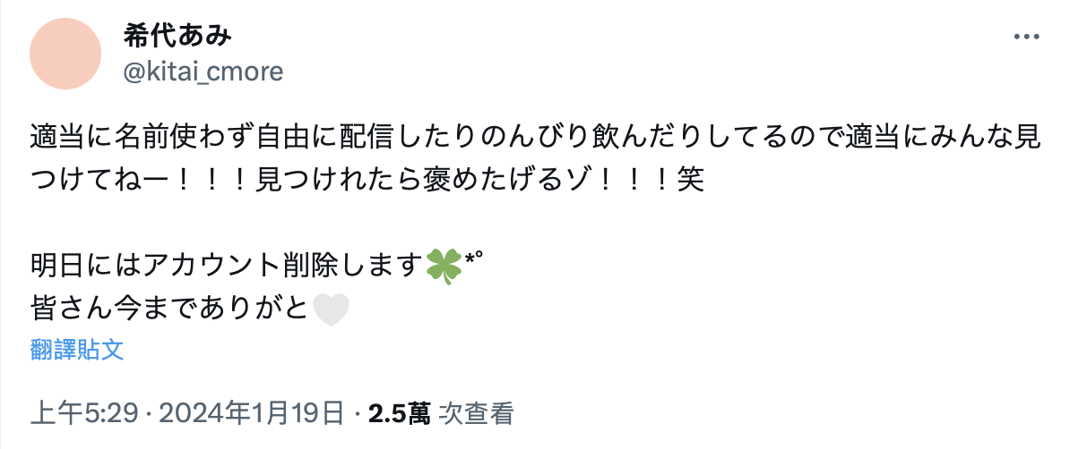 也许有人会觉得就算不拍片了,社群帐号留着也没关系吧?毕竟多的是女优留着社群帐号一走了之,但问题是希代あみ(希代亚美)不想占着茅坑不拉屎了,她可以用其他帐号和大家互动,但她不想在卸下AV女优身份后继续使用之前的帐号,所以⋯