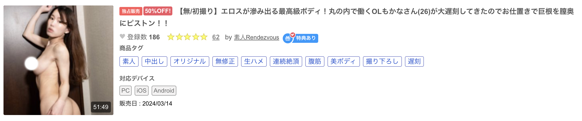 番号是FC2-PPV-4341884,标题为「【無/初撮り】エロスが滲み出る最高級ボディ!丸の內で働くOLもかなさん(26)が大遅刻してきたのでお仕置きで巨根を膣奥にピストン!!」,卖家「素人Rendezvous」除了强调这位女优是第一次拍摄外也说这位白天是在丸之内上班的OL拥有最高級ボディ(最高级的Body),然后因为拍片大迟到所以被男优用大鸡鸡惩罚了,在如狂风如暴雨的凶猛活塞运动后被射了进去,小穴流出白浊的精汁⋯很文博客-https://www.hinku.com/56602.html