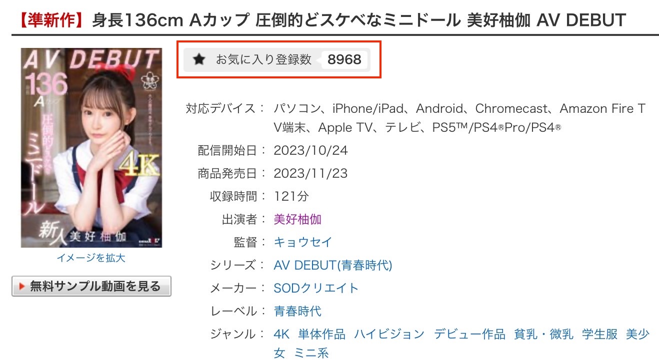 前几天她有在X上发文说会暂停发片好一阵子,结果马上就进行「最后的摄影」,看来是认为未来发展无望:其实她也没有表现不好,第一支作品在FANZA的串流部门拿到快9000个赞,如果你知道业界最强小恶魔松本いちか(松本一香)只要拿到2500个赞就不用被砍头就知道美好柚伽表现挺不赖的;但或许是这一行太过竞争、也或许是136公分高的她其实并没有大家想的那样童稚,导致她后来就发片断炊了: