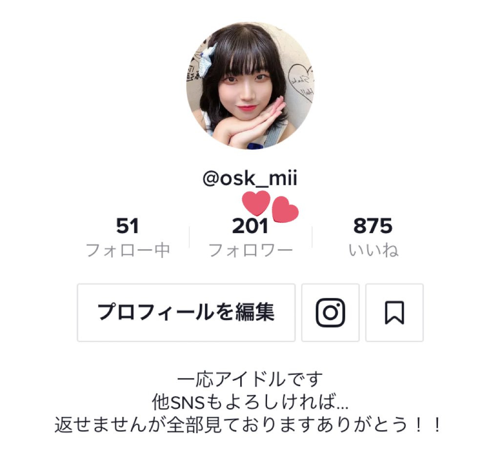 事情是这样的,2021年的暑假,这位宇佐美みい(宇佐美未依)是以名古屋地下偶像团体「OS☆K」一员的身份站上舞台,不过她待的时间很短,11月休业,隔年4月(2022/4)就退团,理由是要专心读书ー也就是说她实际活动的时间不到半年,把IG翻出来也可以发现她才200个追踪,我没有少打一个零,就是两百个追踪⋯