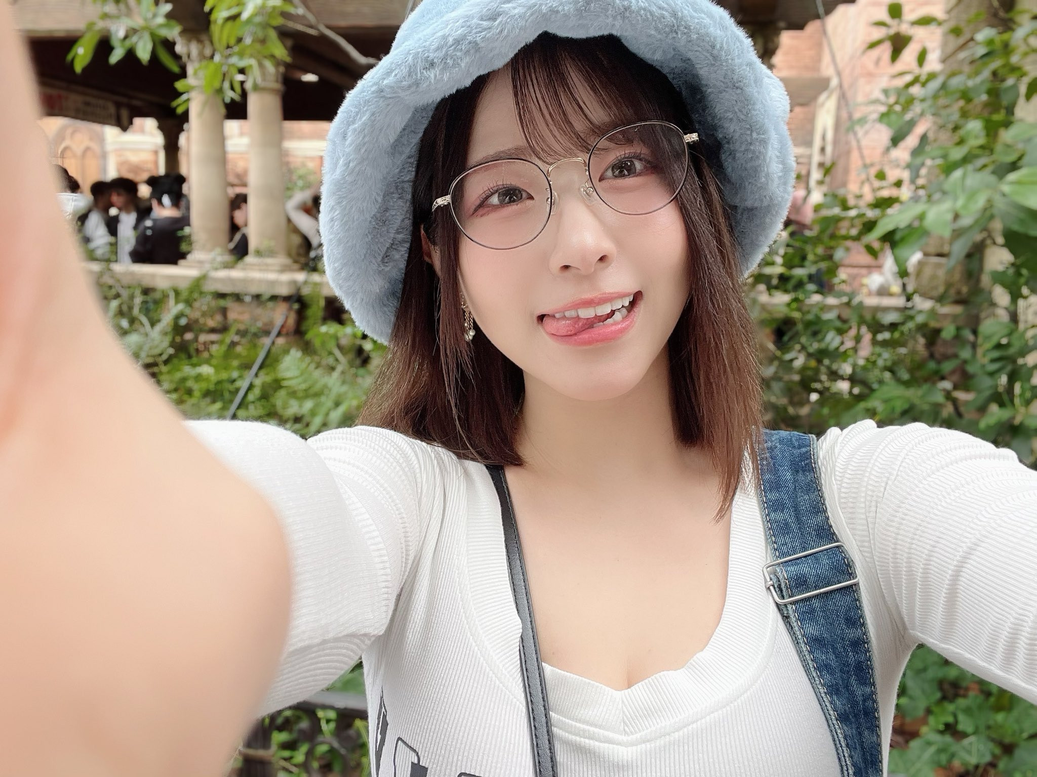 奇怪,怎么叫沙月的女优都会自带阿嘿颜?沙月恵奈(沙月惠奈)在拍摄宣传照的时候就火力全开,不只会用这张脸蛋和每一个工作人员合照而且底下还有咸猪手乱撩,还好我是台北柳下惠不为所动,但我觉得一般粉丝肯定乐不可支: