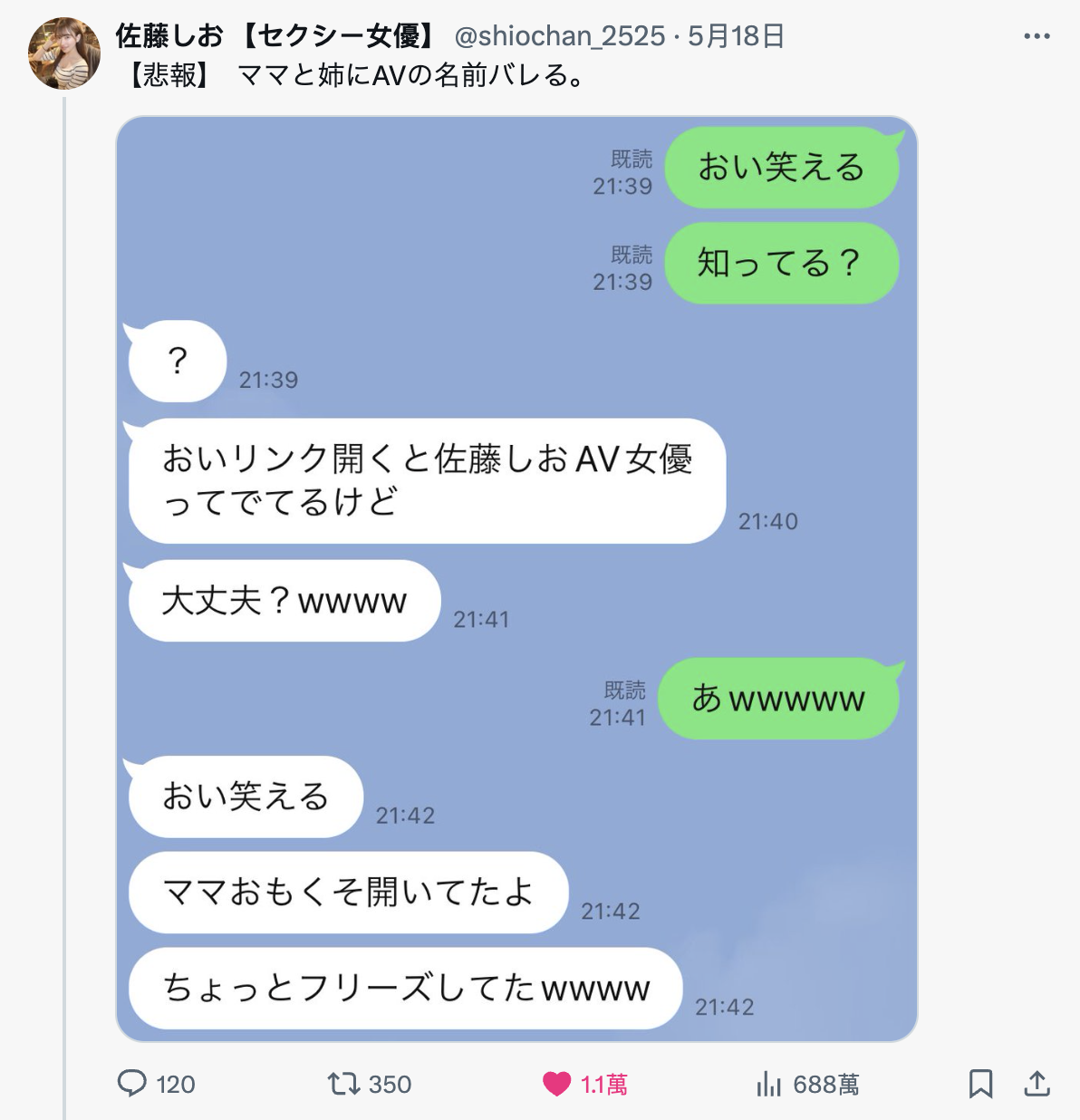 而她的状况也告诉我们现在女优想要保密不让家人知道自己拍A片是很不容易的事,除非只做短打、不然片商和事务所都会希望女优搞个社群推销作品ー然后没人追踪会被觉得是不是不行、太多人追踪又很难保住身份不曝光,真的很难拿捏啊: