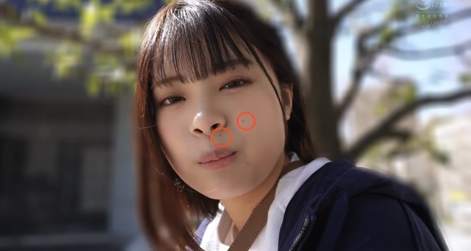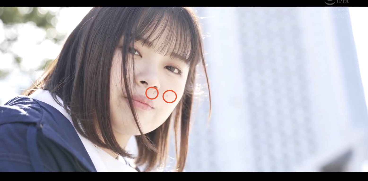 透过嘴唇上方以及脸颊上的痣我们就可以确定她就是在片商kawaii*出道的「七緒ひみか(七绪绯美佳)」:她是去年暑假出道的好手,因为被认为是広瀬すず(广濑铃)的明星脸,所以片商是直接用专属契约「框」了下来,给了她5支作品的机会⋯