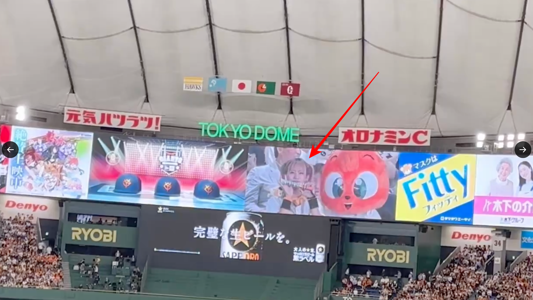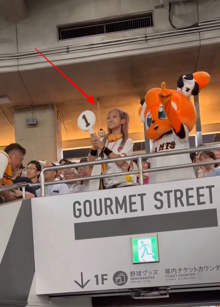 但还没完喔,讲到巨人迷最近还有一位才刚引退的女优「渚みつき(渚光希)」成了话题,大家都知道球场会把看球的帅哥美女特写上大萤幕,那天渚みつき(渚光希)就被Catch到了: