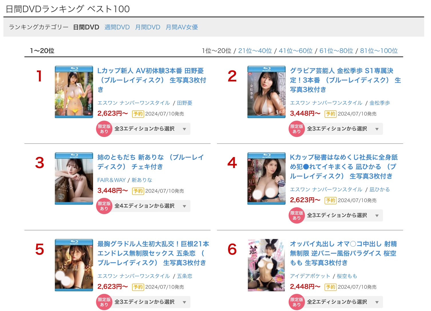 这是昨天FANZA(DMM)的实体DVD通贩排行榜。很文博客-https://www.hinku.com/61792.html