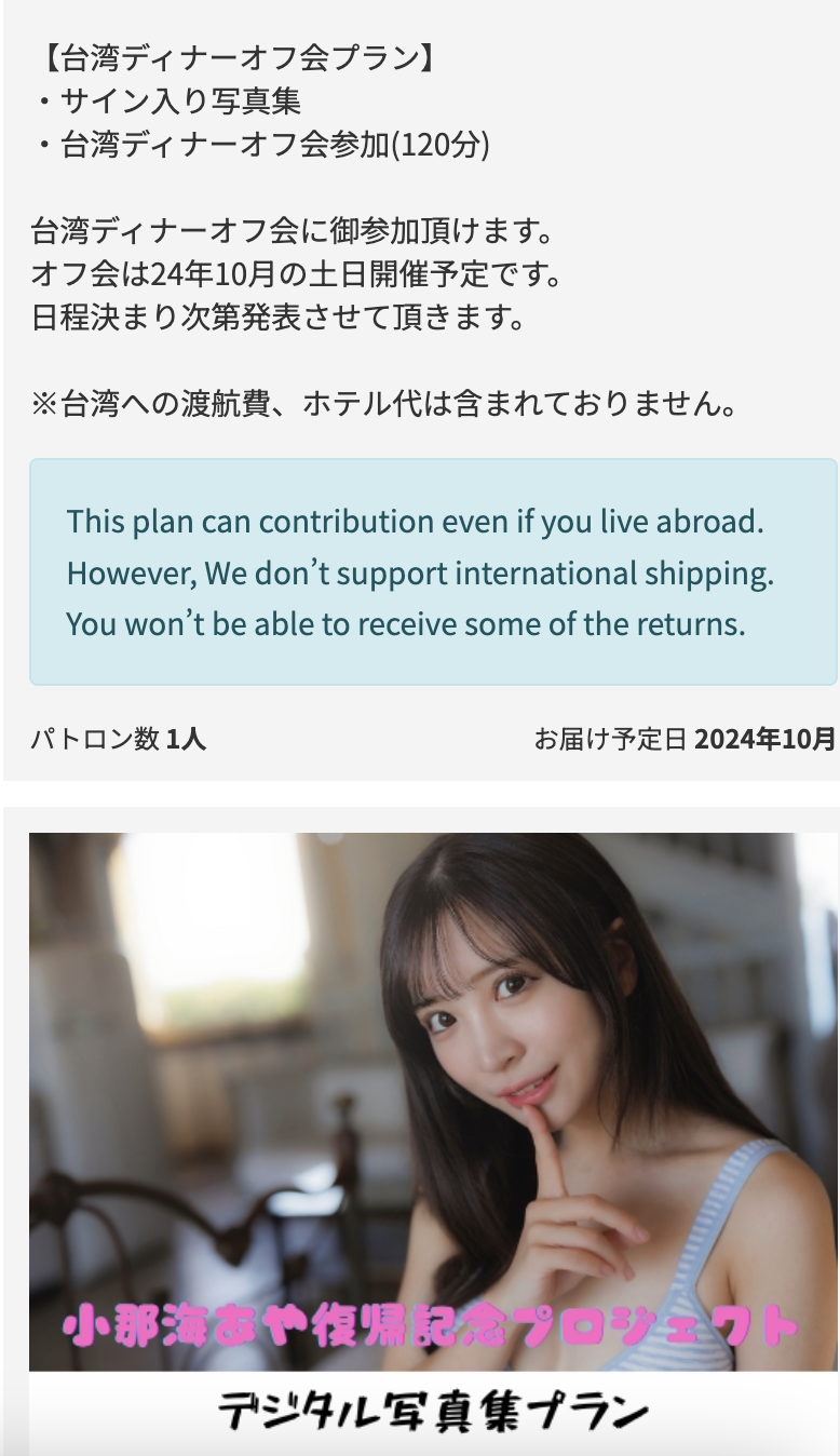 另外还有一个好消息,小那海あや(小那海绫)的募资已经过了目标金额,接下来会在台北举办写真展:不久前经纪公司已经来台湾勘查场地,如果没有意外,小那海あや(小那海绫)应该会在10月底的时候来台湾和大家见面: