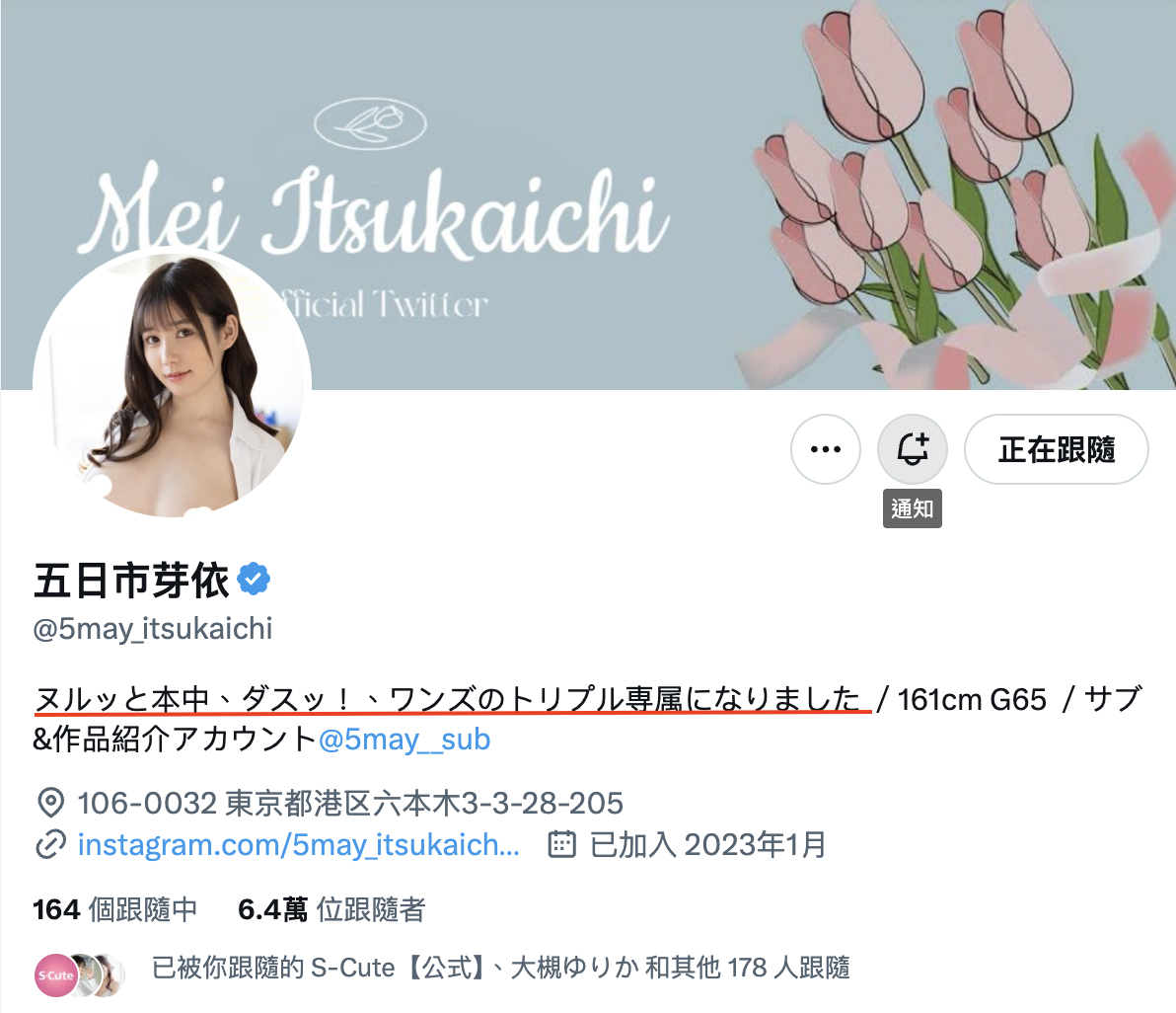 然后事务所扮演的角色也很重要:由于被八家事务所抵制,所以五日市芽依和同事务所的其他女优一样淡化经纪公司的存在,但这个三社共有的专属编制其实就是她的事务所All Group之前为七瀬アリス(七濑爱丽丝)变的魔法,所以就算这家经纪公司最近愈来愈低调、官网和官方X几乎完全不动甚至关闭了但他们能力还在,不然五日市芽依不可能拿到那么多的片约甚至还成了专属女优⋯