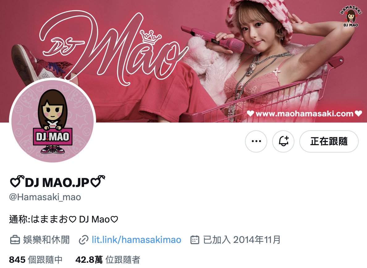不过话说回来,从她X的名字改成「DJ MAO.JP」大概可以猜到不做AV女优浜崎真緒(滨崎真绪)后她想要干嘛,另外,她是有海外经纪人的,就算不做AV女优应该也会在各种娱乐场合看到她卖力工作,我甚至觉得「不来TRE」这话说的有点早,以她的身材以及热情开放的互动能力,厂商应该都很欢迎的⋯