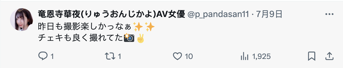 所以她为什么也是1本限定契约?我认为同样的招式没办法对肾斗士的我们用第二次,所以一片就好;至于她之后还会不会发片?从她的X(https://x.com/p_pandasan11)来看7月还有拍片,应该到明年年初都可以欣赏她的作品,就让我们看看之后的发展吧⋯