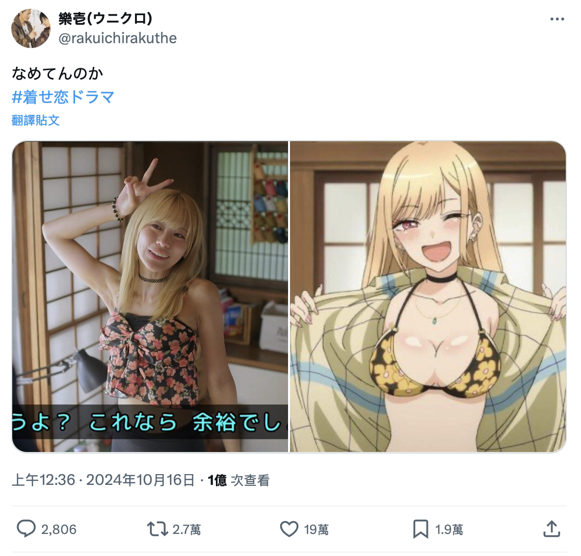 写到这边你大概就知道了,没错,逢見リカ(逢见梨花)演出的这次作品也是改编自「その着せ替え人形は恋をする(爱上换装娃娃)」(DVRT-006),当然,剧情一定会让饰演五条新菜的暗黑翔平「蓝井优太」下半身炸裂狂抽猛送逢見リカ(逢见梨花),不过看看剧照、看看一样丈量尺寸的名场景,也难怪在日本X出现「AVの方」趋势的同时,日本乡民是这么说的:
