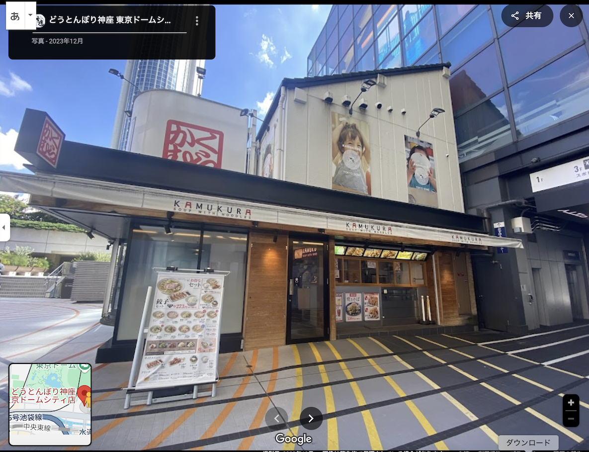 2)拉面店是どうとんぼり神座 東京ドームシティ店(道顿掘神座拉面,东京巨蛋City店)。