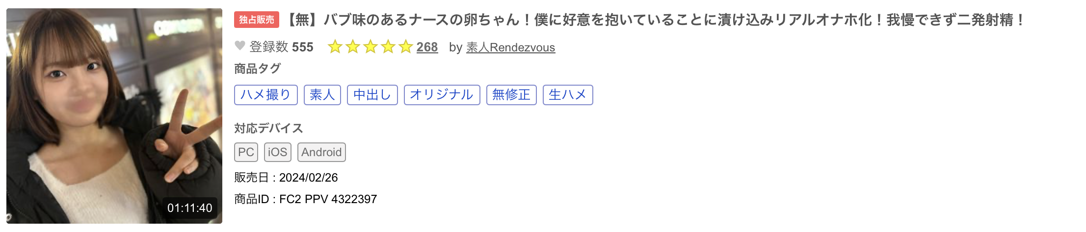 没错,重点来了,如果只是一个普通的新人出道,那時藤ゆいな(时藤结菜)可能会让我有点苦恼,要什么时候介绍、写文要详细到什么程度都可能会杀死不少脑细胞,因为我觉得单靠一张封面和25字以内的标题可能没办法吸引太多人看文;不过有了她之前拍摄无码片的资料那就必须放在星期一的中午提升大家的士气了:透过右边下巴、右乳下方以左边肩膀的痣,我们可以确认她和FC2平台上的卖家至少合作了四支无码作品: