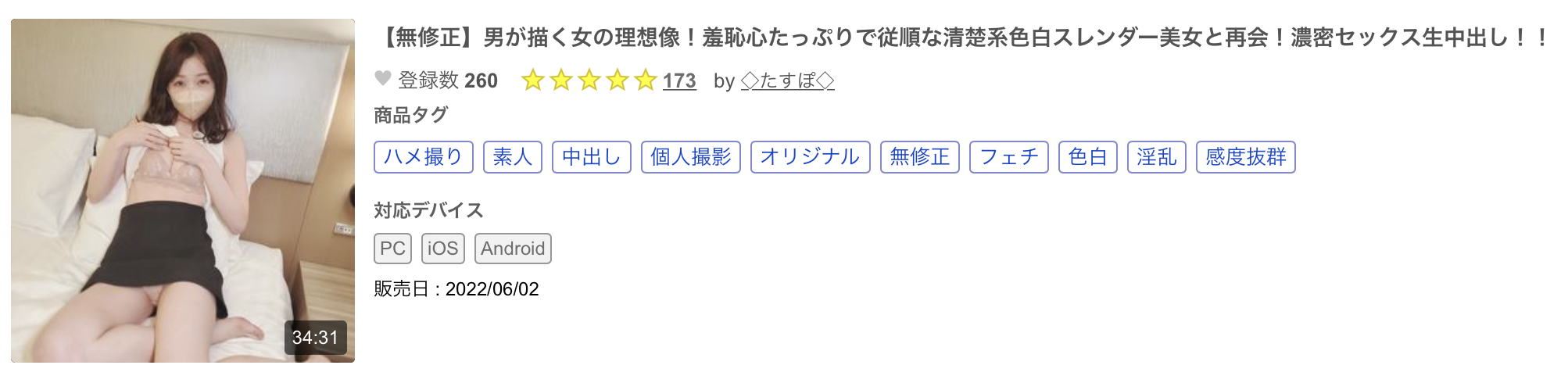 番号分别是fc2-ppv-2710416以及fc2-ppv-2933984,虽然拍片的时候几乎是全程戴着口罩,不过替男优口交的时候她还是有露脸、可以透过脸上的特征确认是小春まり(小春真理)本人无误ー所以虽然改名后的发票存在感不高,不过能在这一行待三年而且还有两支没有马赛克的作品可以看,我觉得这位女优也没有欠大家什么了,就祝她退休后人生下半场一帆风顺,上大号不用愁没有卫生纸~