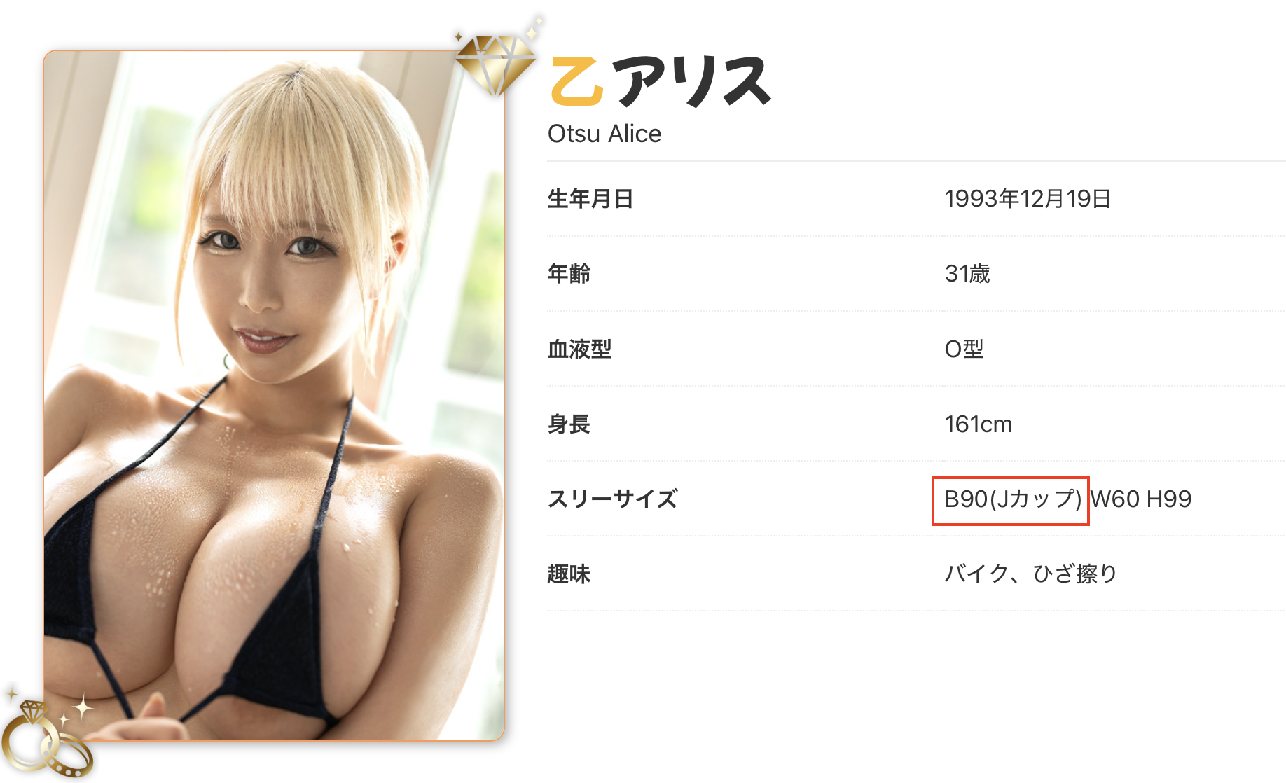 女优名:乙アリス(乙爱丽丝,Otsu-Alice)