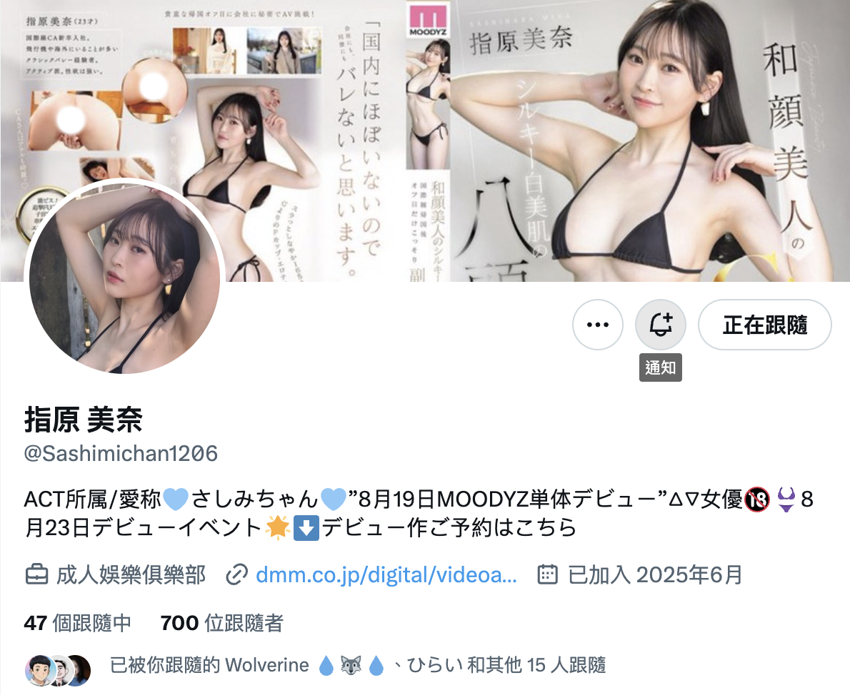 这位女优名唤「指原美奈」,但相信很多朋友期待她很久了:因为她上个月就开始用X了(https://x.com/Sashimichan1206),一开始自然不敢露出艺名,不过因为指原的读音是「Sashihara」、所以她自称是さしみ(沙西米,前面两个读音相同),直到出道作情报解禁后才掛上指原美奈之名:很文博客-https://www.hinku.com/76493.html