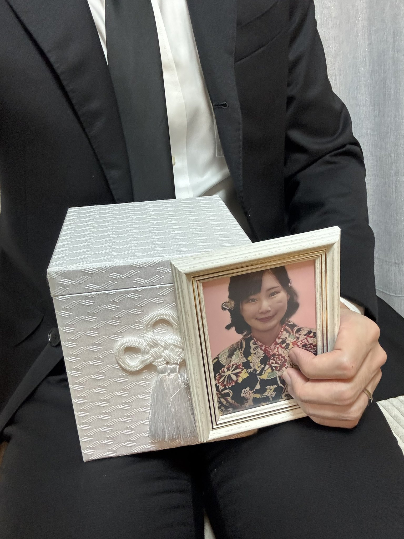 这个名为「現役看護師みか」的帐号(https://x.com/mikafanza)昨天是做了令人惊讶的更新,照片里一位不露脸、穿着西装的男子捧着骨灰盒加上みか(美香)的遗照,发文的内容则是ー很文博客-https://www.hinku.com/78593.html