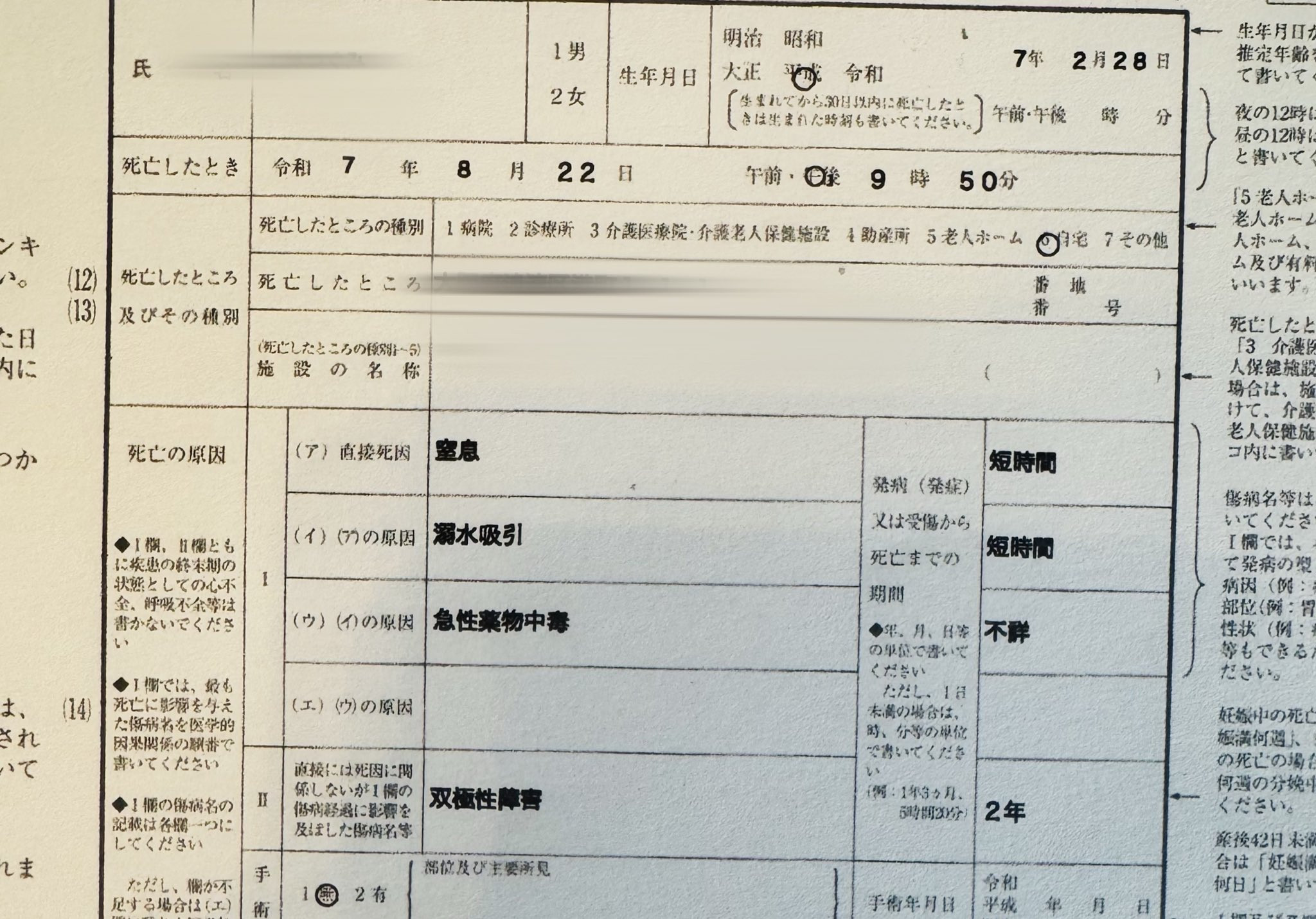 所以更新社群的人(因为我也不确定是谁更新的)贴出了死亡证明书,上面明确记载みか(堀内美香)有着双极性障碍,也就是躁狂、忧郁症可能同时发作的情绪问题;然主要的死因是急性药物中毒伴随而来的溺水窒息,所以应该是服下安眠药然后把自己沉到了浴缸里⋯