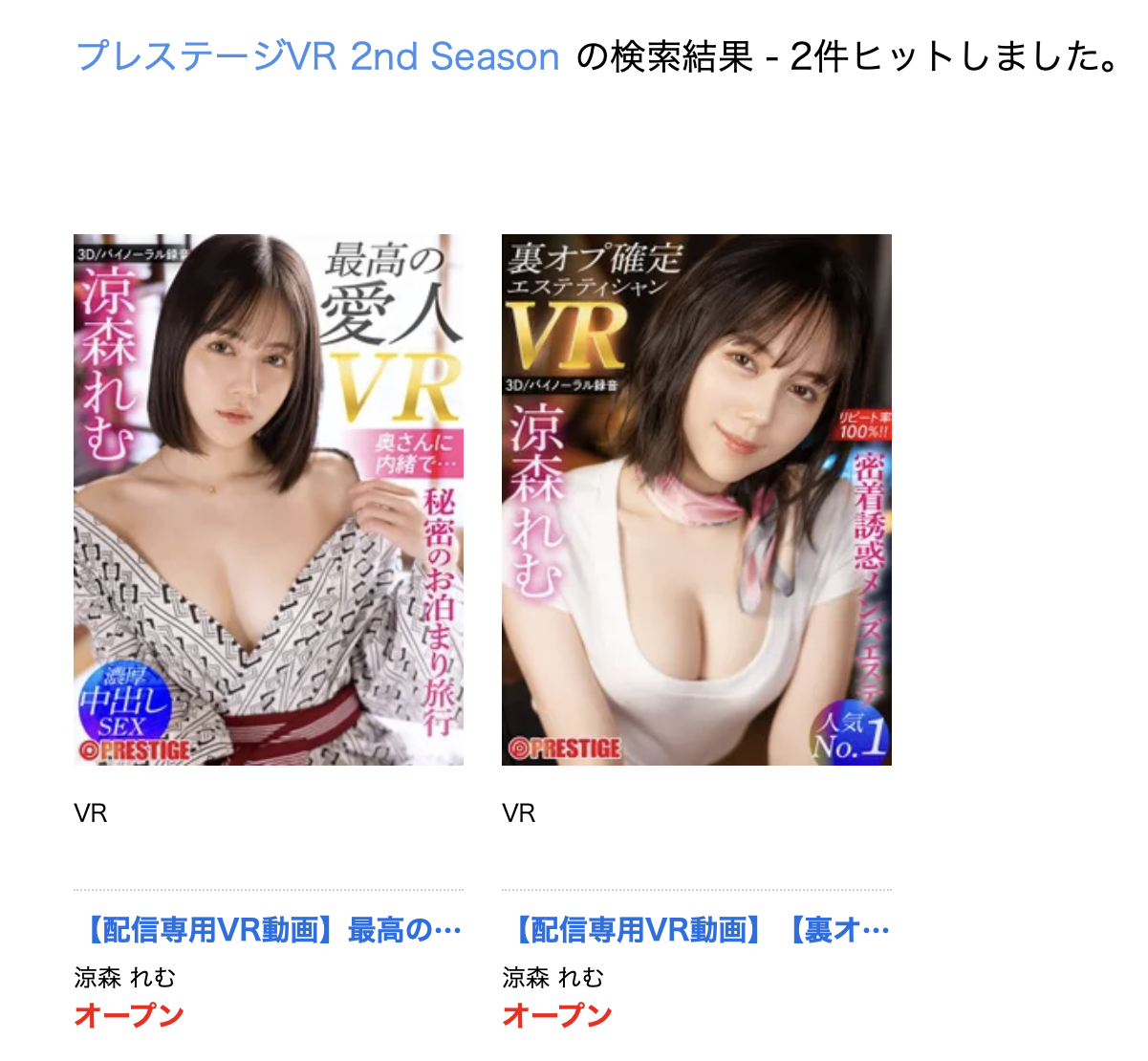 为什么?因为蚊香社(Prestige)已经很久没有发售VR片了,他们自从启动プレステージVR 2nd Season、也就是第二波拍VR的计画以来就只和涼森れむ(凉森玲梦)合作了两支作品,而且都是去年(2024)的事了ー这其实蛮有趣的是,还记得之前在台北有专门让大家看VR片的看片中心吗?当时那家店的主力就是蚊香社的作品,结果疫情后蚊香社基本上已经放弃了这一块⋯很文博客-https://www.hinku.com/80473.html