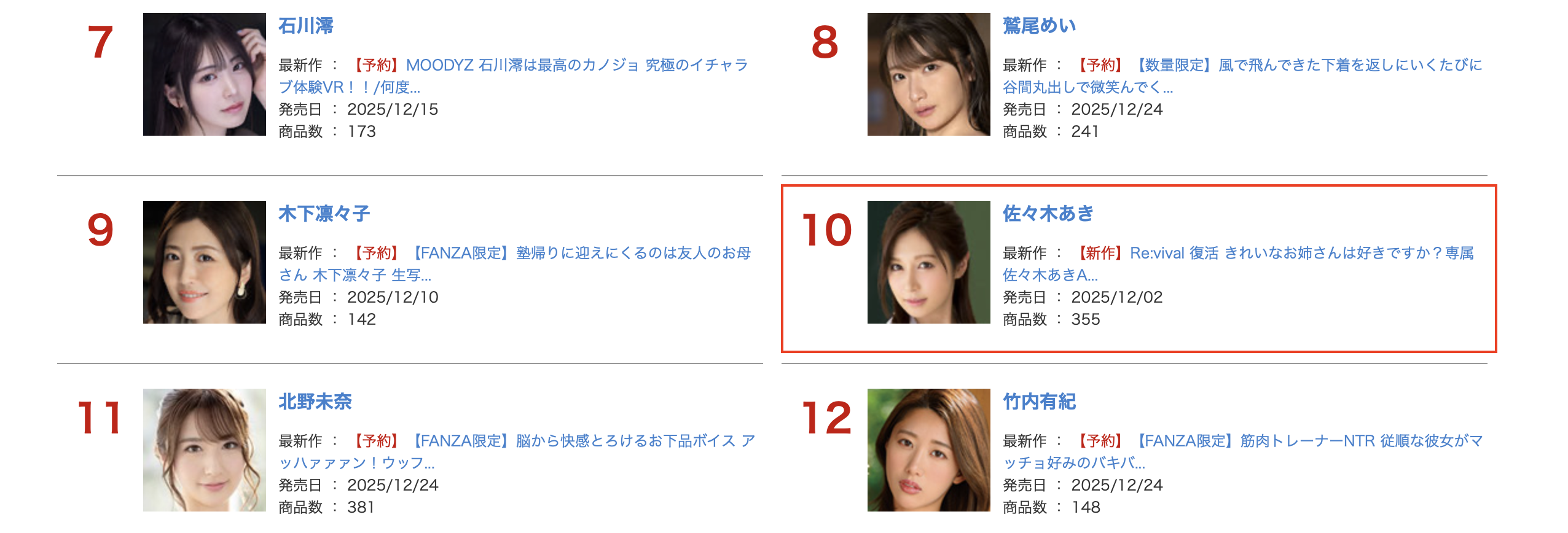 再加上是久违复出,和我一样兴奋者有之、想看看老朋友现在变成什么样子的应该也很多,所以佐々木あき(佐佐木明希)这支复活作品的买气相当旺,在刚刚公佈的fanza实体作品的11月销售排行榜她拿下第6、累积销售则是第10,可说是为了M社和自己拿下来好彩头ー不过我们都知道这一行人气变化很快,初入江湖天下无敌然后没过多久寸步难行的例子太多了,佐々木あき(佐佐木明希)第一支作品打了胜仗可不能掉以轻心,因为大家都看过她现在的模样了,不喜欢的人很有可能不会再买片了,接下来就要看她的真本事惹:很文博客-https://www.hinku.com/83523.html