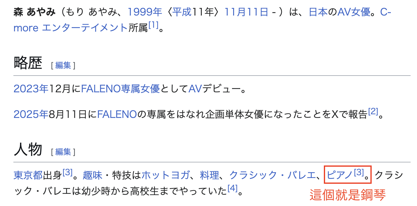 所以以后一定会愈来愈多AI作品和大家见面的。最后一个问题,既然早瀬すみれ(早濑堇)只是个替身、那她的本体是谁?单纯看身体条件,我认为是Faleno Star 出道的女优「森あやみ(森彩美)」,除了因为我贪恋她的身体看了很多很多片子直觉是她外,超过170公分又是C罩杯的女优目前也就是她条件最好,最后也是最重要的,维基百科有告诉我们森あやみ(森彩美)的趣味和特技就有「钢琴」,所以,我觉得就是她了,如果不是她,我就把公司的PS5摇杆吃掉!