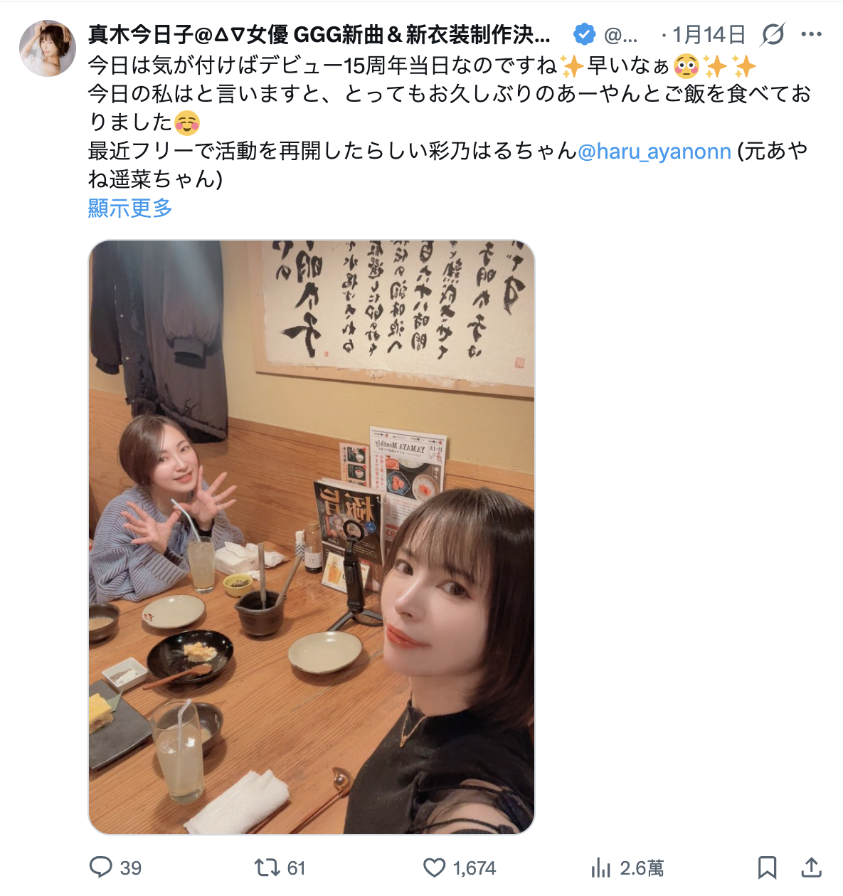 然后真木今日子还附上彩乃はる(彩乃春)的X(https://x.com/haru_ayanonn),所以从这段发文我们可以知道几件事,让我条列式告诉大家:很文博客-https://www.hinku.com/88273.html